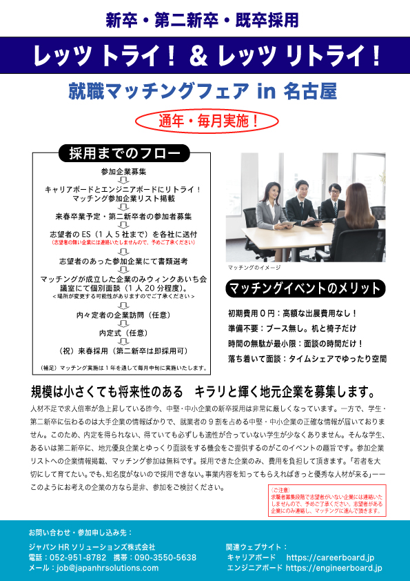 電話番号:052-951-8782 (お気軽にキャリア相談してください)