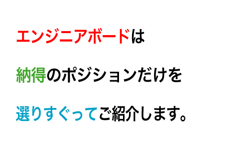 当社は派遣企業ではありませんので、採用は求人企業が行います。ただし、当社には紹介企業として責任がありますので、ご不明な点がありましたらご相談ください。エンジニアボード登録者の方々とは末長いお付き合いを期待しております。